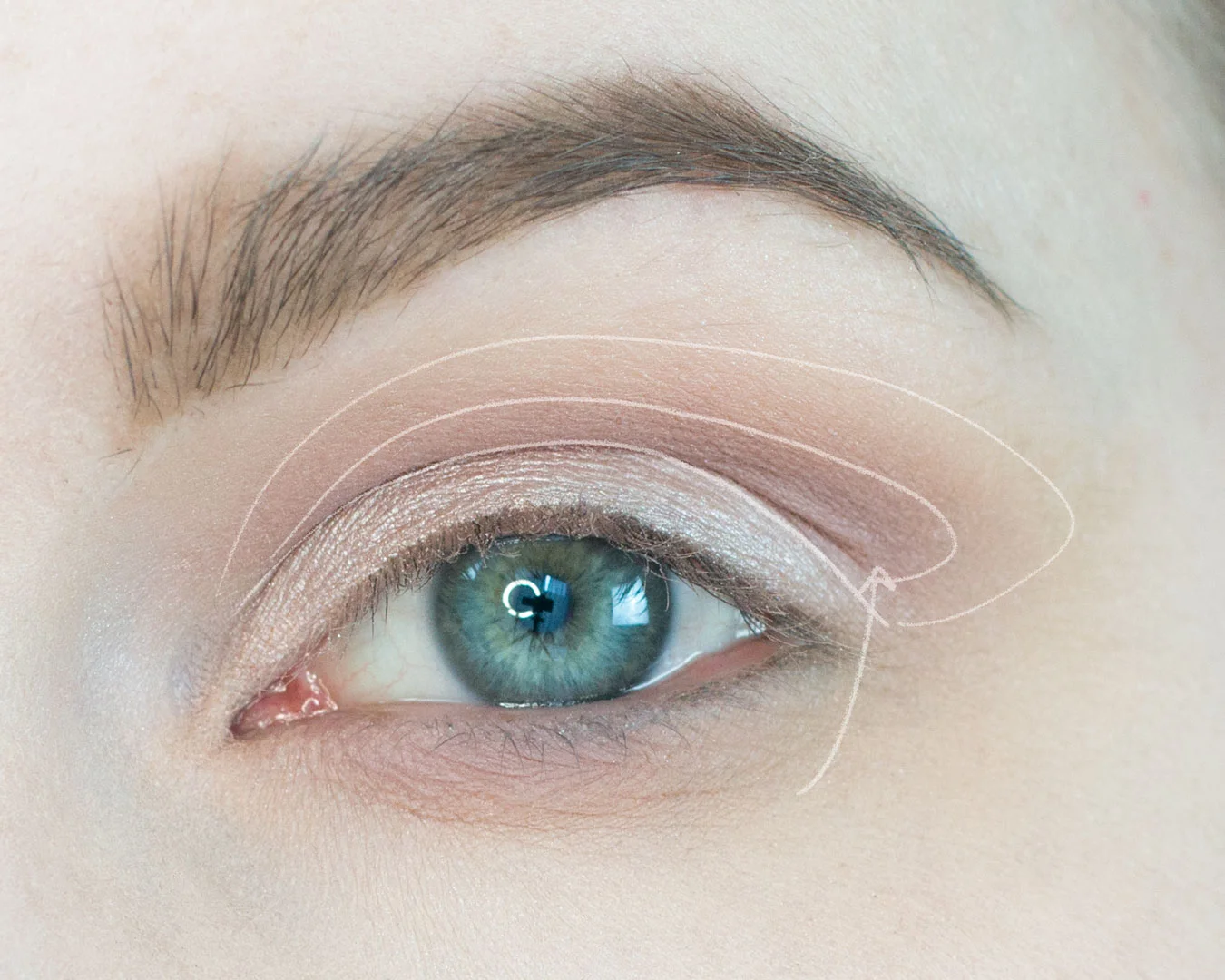 I am going to be adding Buon Fresco with a Hakuhodo J5529 to the crease, in the placement of the inner line. Then I am using a clean Simga E40 to blend the color just a touch so we have no harsh lines.