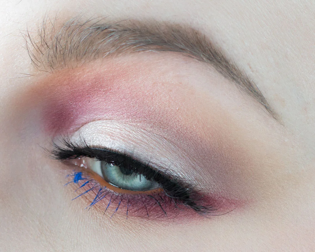 These penultimate steps are really going to be fun, but you can skip straight to adding mascara for a tamer look. I am adding Mac Chromaline in Genuine Orange to the waterline. This pops nicely against blue eyes, if I was applying this to a model with brown eyes I would probably swap it for a royal blue liner.